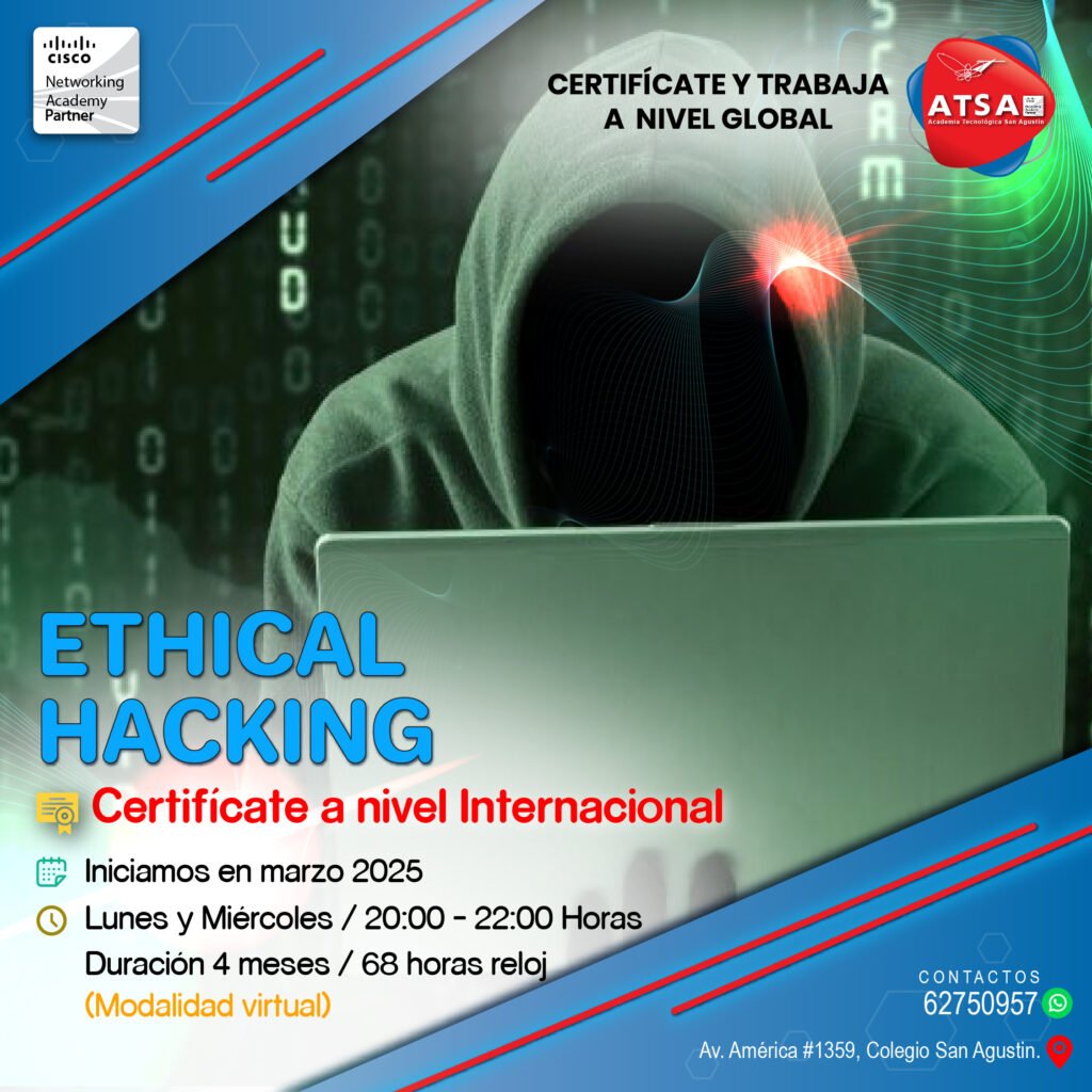 El curso de Etical Hacking de Cisco te prepara para detectar y prevenir ataques cibernéticos, una habilidad clave en la seguridad digital. Aprenderás pruebas de penetración, análisis de vulnerabilidades y ciberseguridad ofensiva, todo con herramientas prácticas.