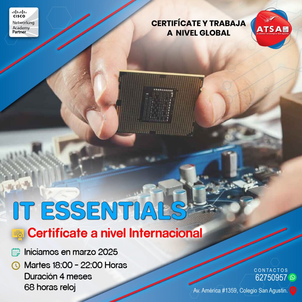 Aprende desde cero con el curso IT Essentials: Mantenimiento y Reparación de Computadoras y adquiere habilidades prácticas para diagnosticar, reparar y optimizar equipos como un profesional.