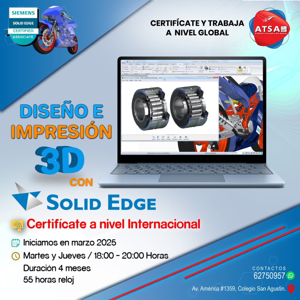 El curso de Solid Edge de Siemens te capacita en modelado 3D, simulación y manufactura digital, habilidades clave en ingeniería y diseño industrial. Aprenderás a crear piezas, ensamblajes y planos técnicos con una de las herramientas más avanzadas del sector.