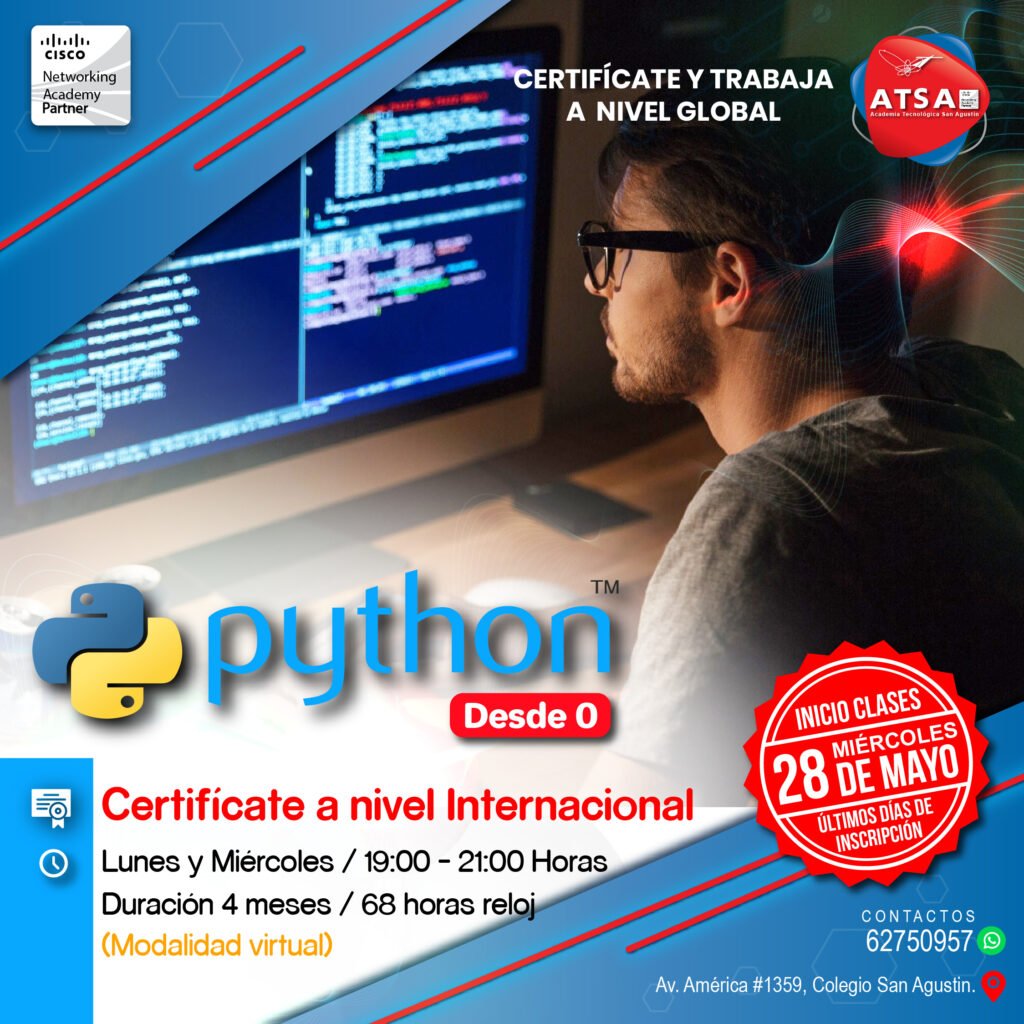 Con el curso de Python de Cisco, aprenderás desde cero uno de los lenguajes de programación más usados en inteligencia artificial, automatización, análisis de datos y desarrollo web. ¡Ideal para principiantes y futuros programadores!